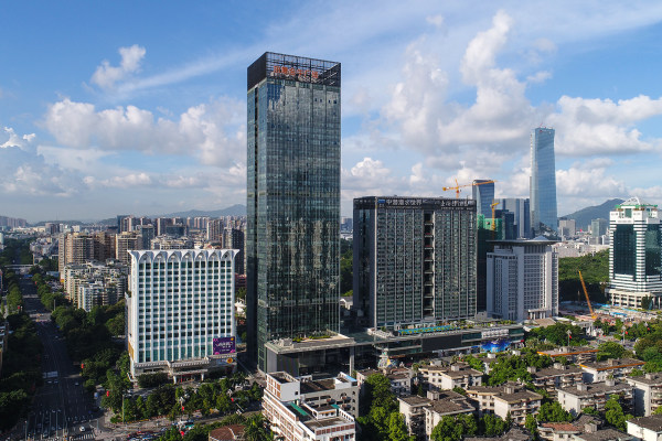 深圳田厦金牛广场(田厦国际中心)坐落于深圳市南山区桃园路与南光路交叉口西北侧,是集超甲级写字楼、商务公寓、商业综合体及地铁上盖物业于一体的都市地标性建筑群。项目总建筑面积约19万平方米,由A、B两栋塔楼及四层商业裙房构成,其中A座为196.8米超高层国际行政办公楼,B座为99.9米商务公寓,建筑群以现代简约风格融合绿色生态理念,外立面采用LOW-E玻璃幕墙,标准层高4.2米,净高2.95米,空间方正实用率超70%。其设计以“一站式生态办公”为核心,通过首层开放花园、五层休闲平台与立体绿化带形成多维生态网络,打造“会呼吸”的商务场景。