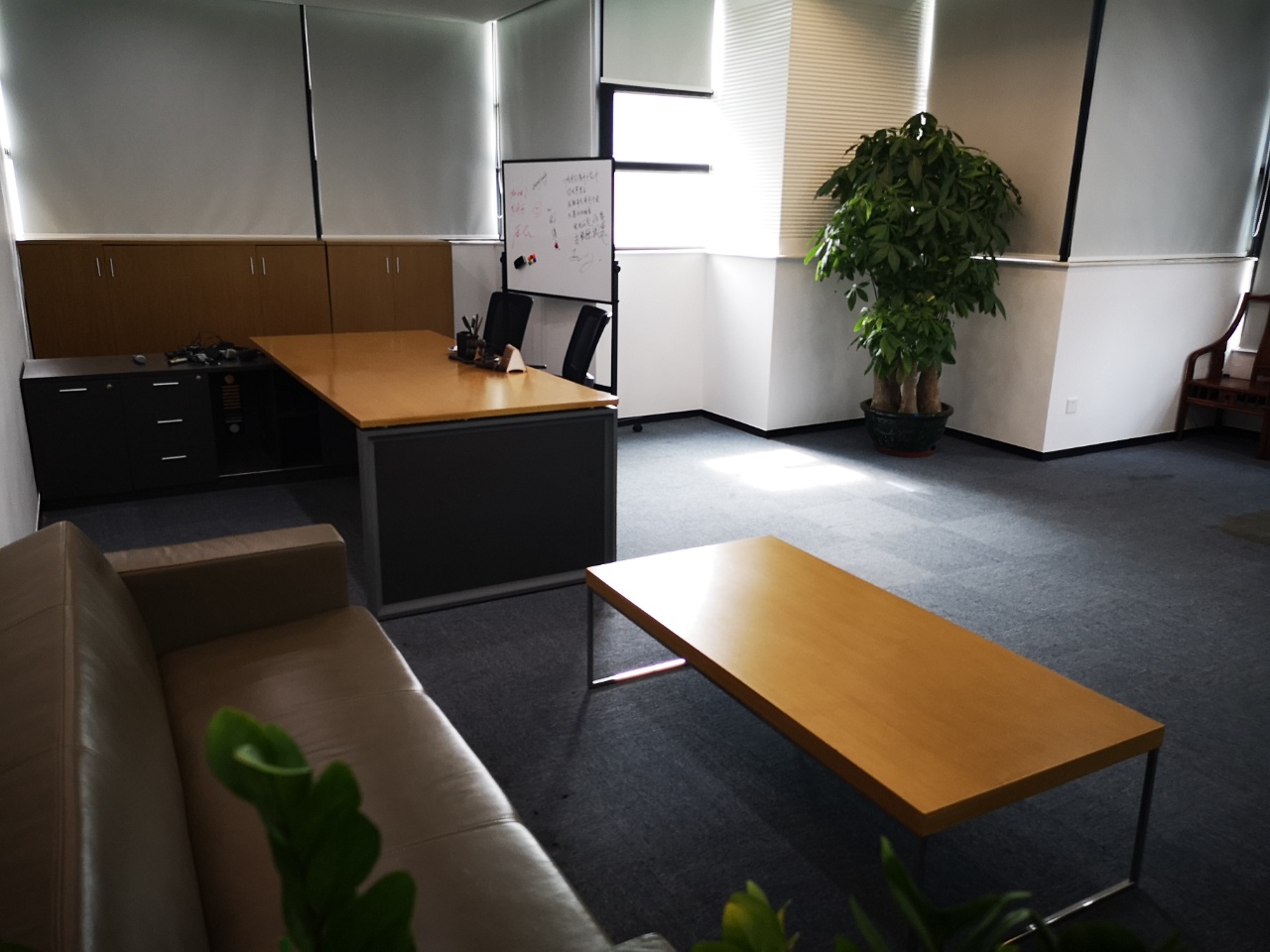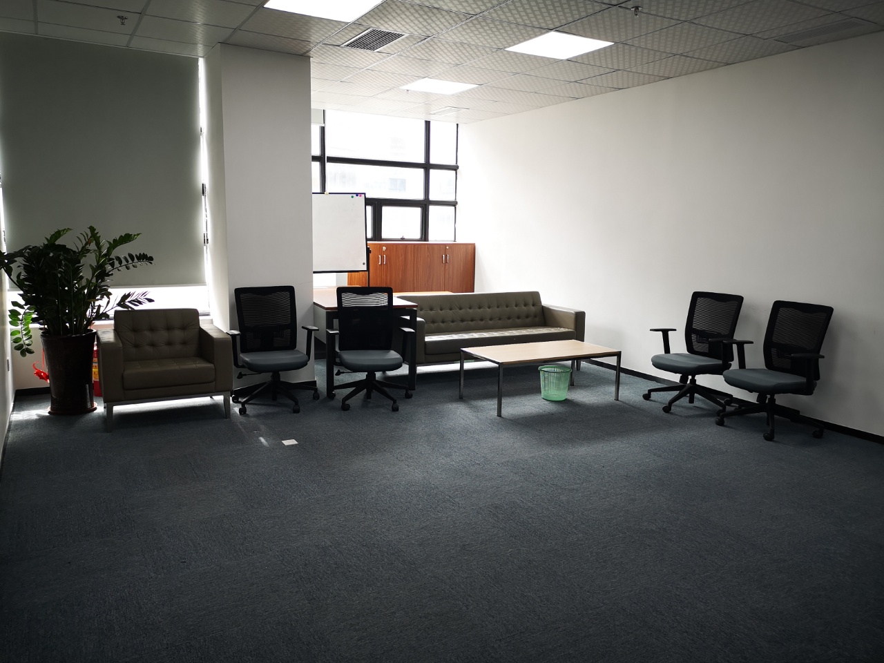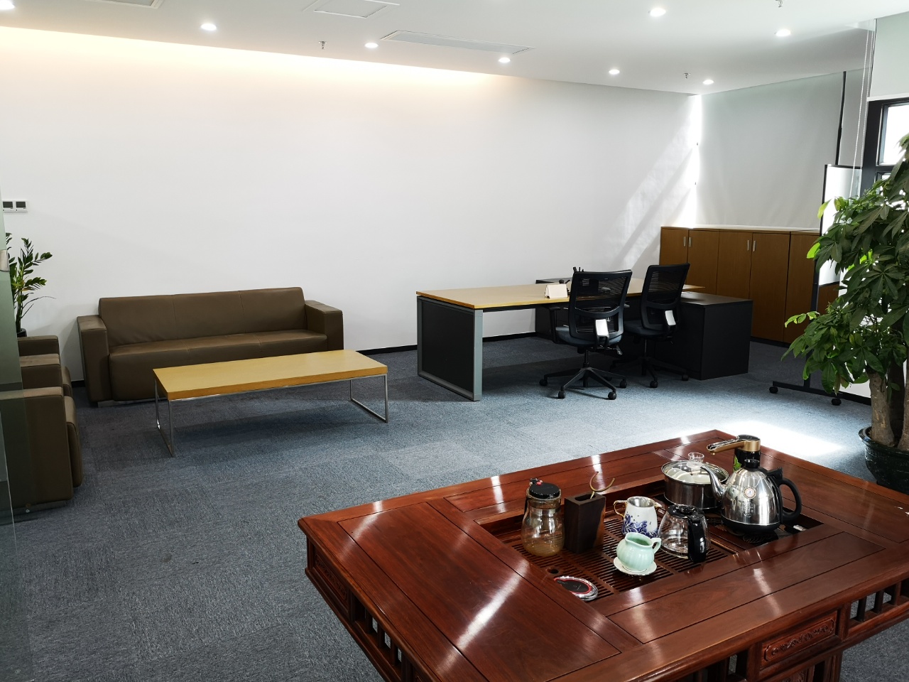 家具配置:带全套家私(含办公桌椅、会议桌、文件柜、前台、茶水设备等)