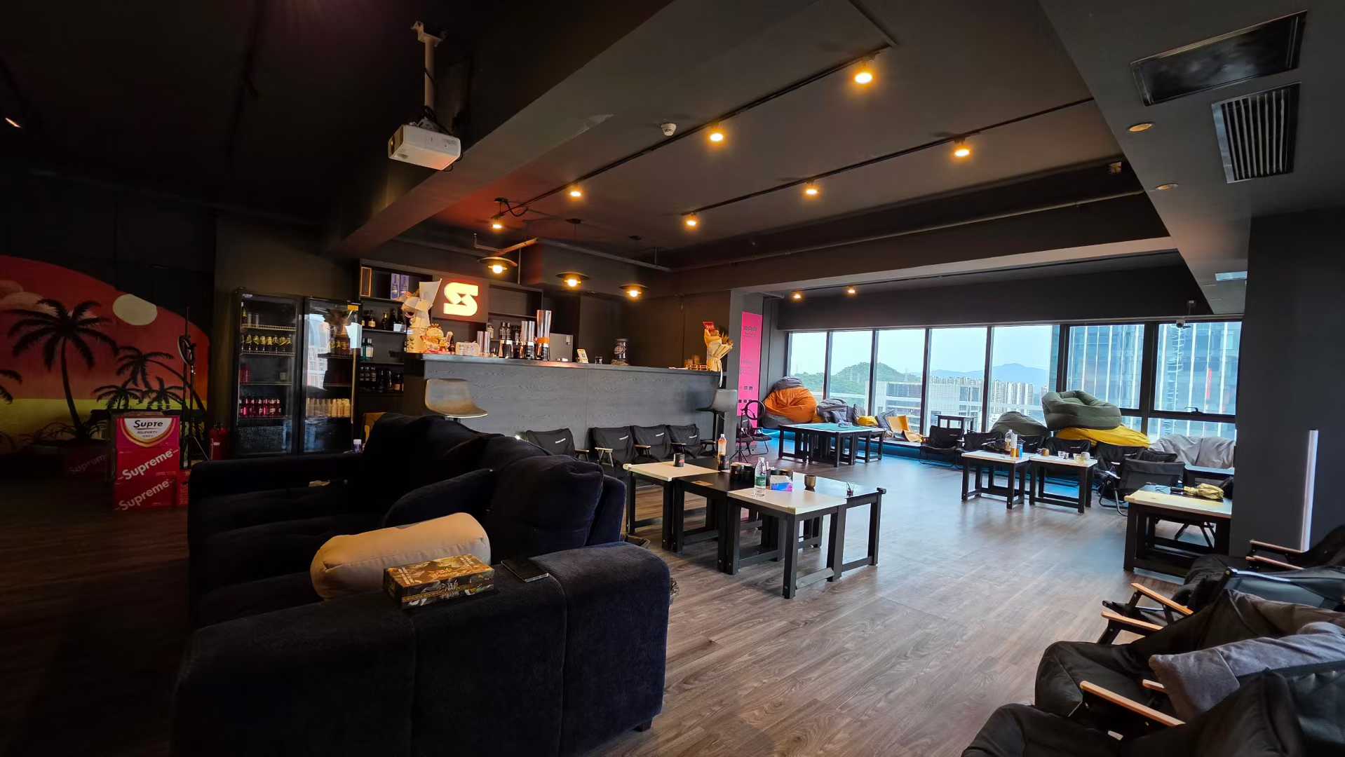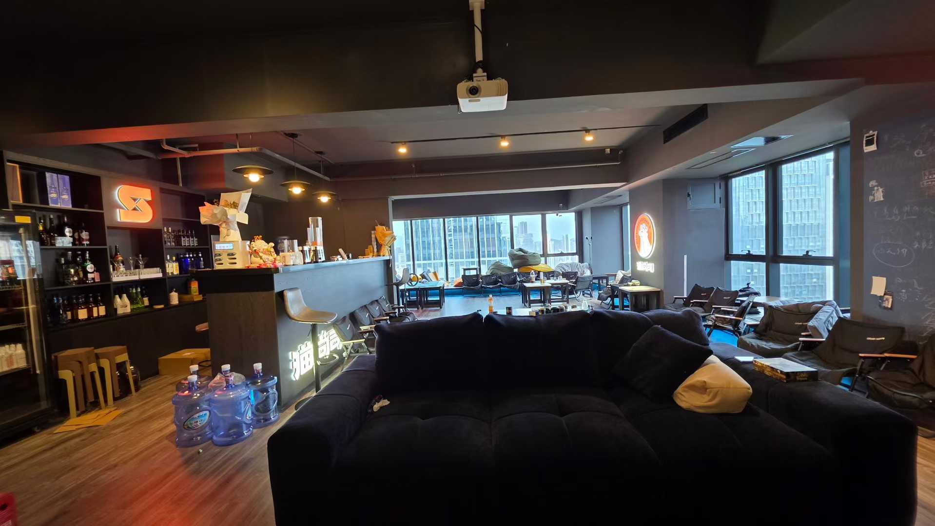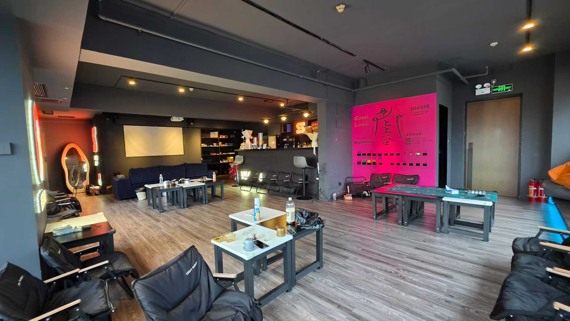 ✅ 音响系统 + 氛围灯光 + 投影/屏幕(可播放音乐/赛事)